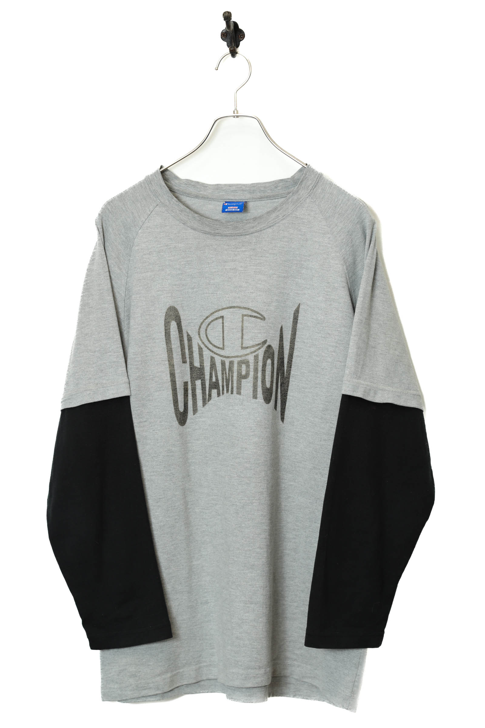 とてもお洒落なチャンピオンのレイヤードロンTが入荷しました!多少洗濯による色の抜け感はありますが、その他商品のコンディションはとても綺麗で、大きめのサイズ感でお洒落に着こなせます!こちらの商品は古着になります。古着の特性をご理解の上ご購入お願い致します。何でも気になる事ありましたら、ぜひご連絡お願い致します。