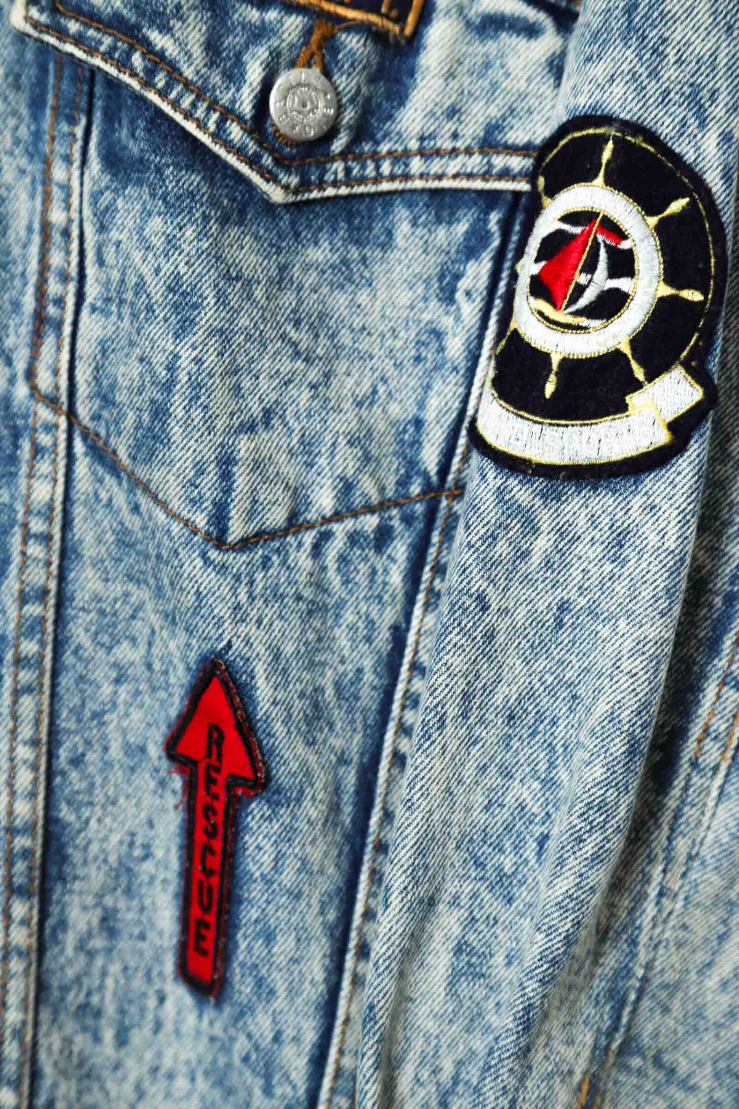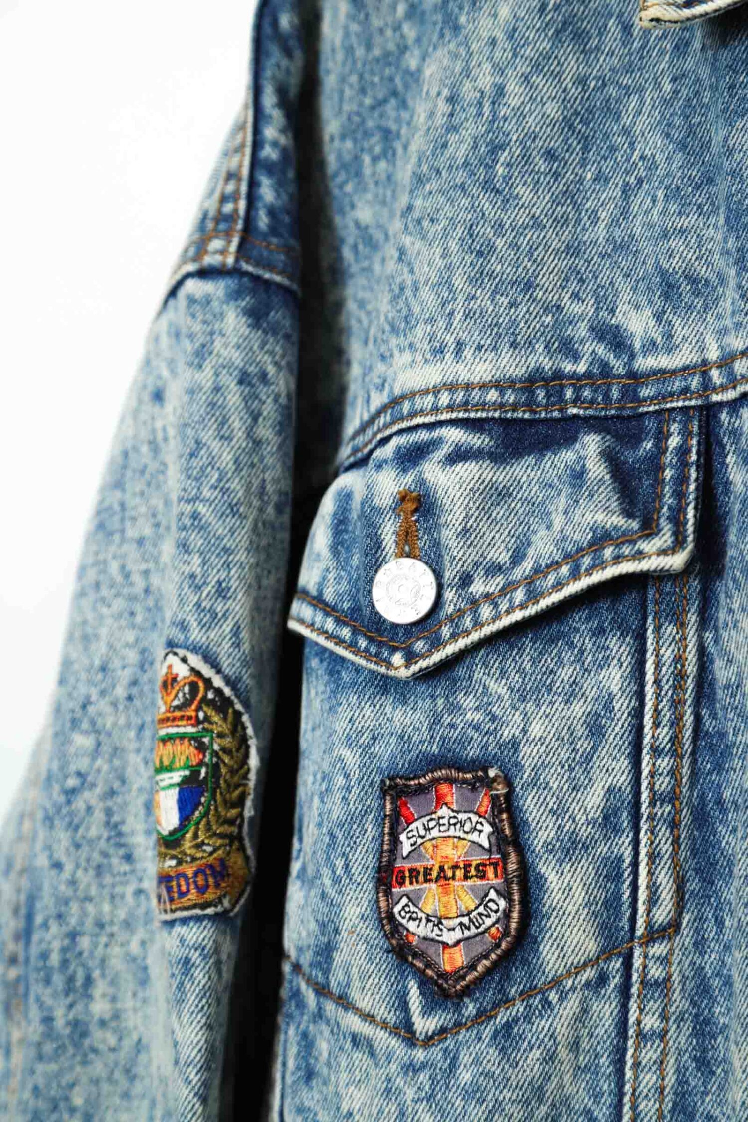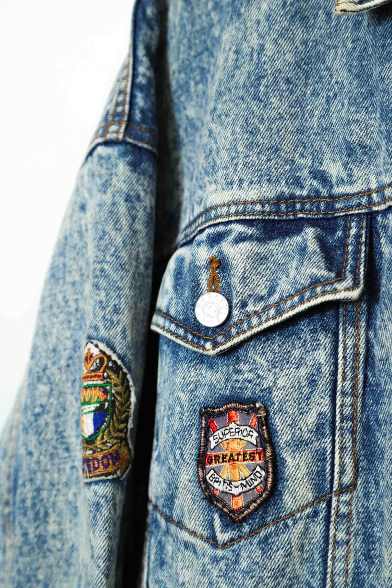 とてもお洒落なパッチ付きのデニムジャケットが入荷しました!第3ボタンが部分的に損傷、部分的に薄い塗料の付着はありますが、ダメージはなくいいアジのある一着!商品のコンディションはとても綺麗で、感でお洒落に着こなせます!こちらの商品は古着になります。古着の特性をご理解の上ご購入お願い致します。何でも気になる事ありましたら、ぜひご連絡お願い致します。