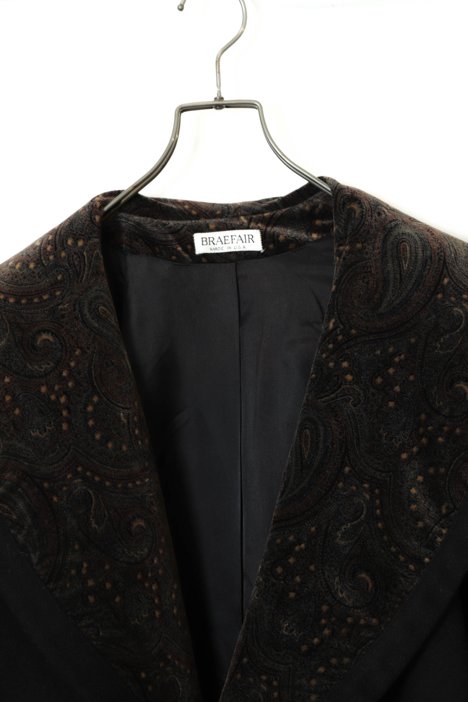とてもお洒落なBRAEFAIRのロングコートが入荷しました!衿にはプリントベルベット生地使用!しかもmade in USA!商品のコンディションはとても綺麗で、いいゆとり感でお洒落に着こなせます!こちらの商品は古着になります。古着の特性をご理解の上ご購入お願い致します。何でも気になる事ありましたら、ぜひご連絡お願い致します。