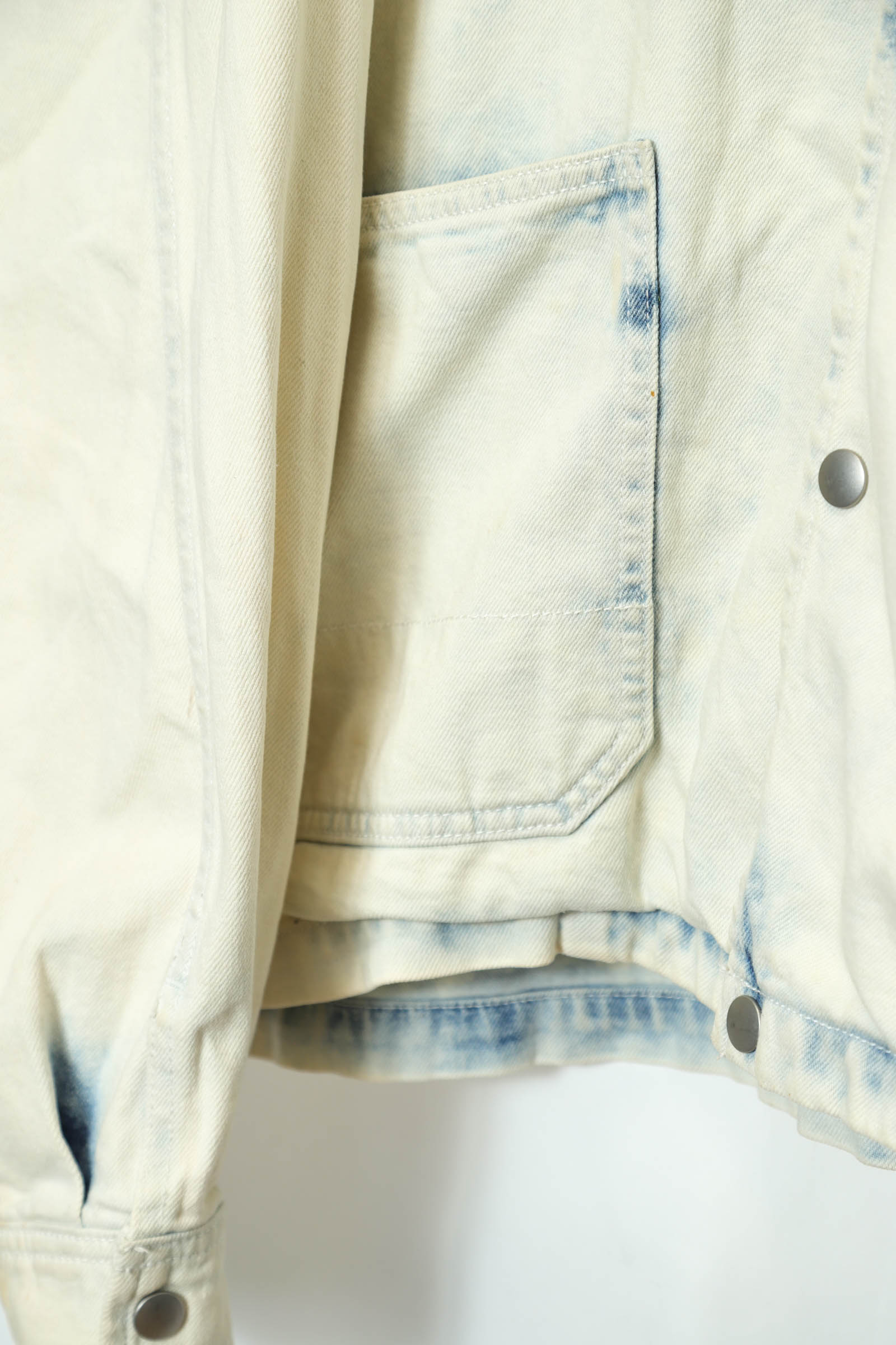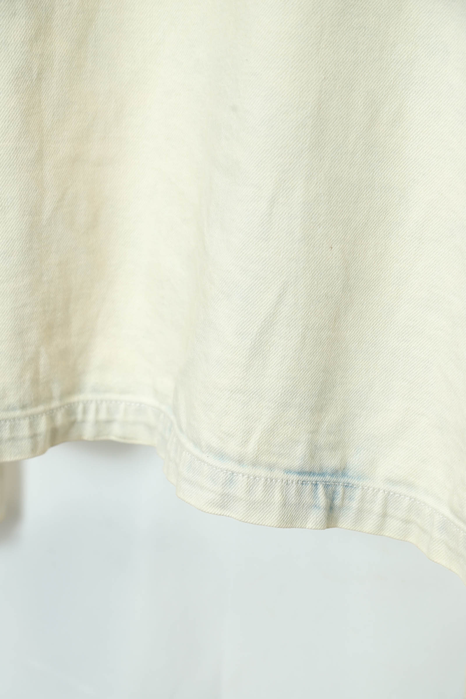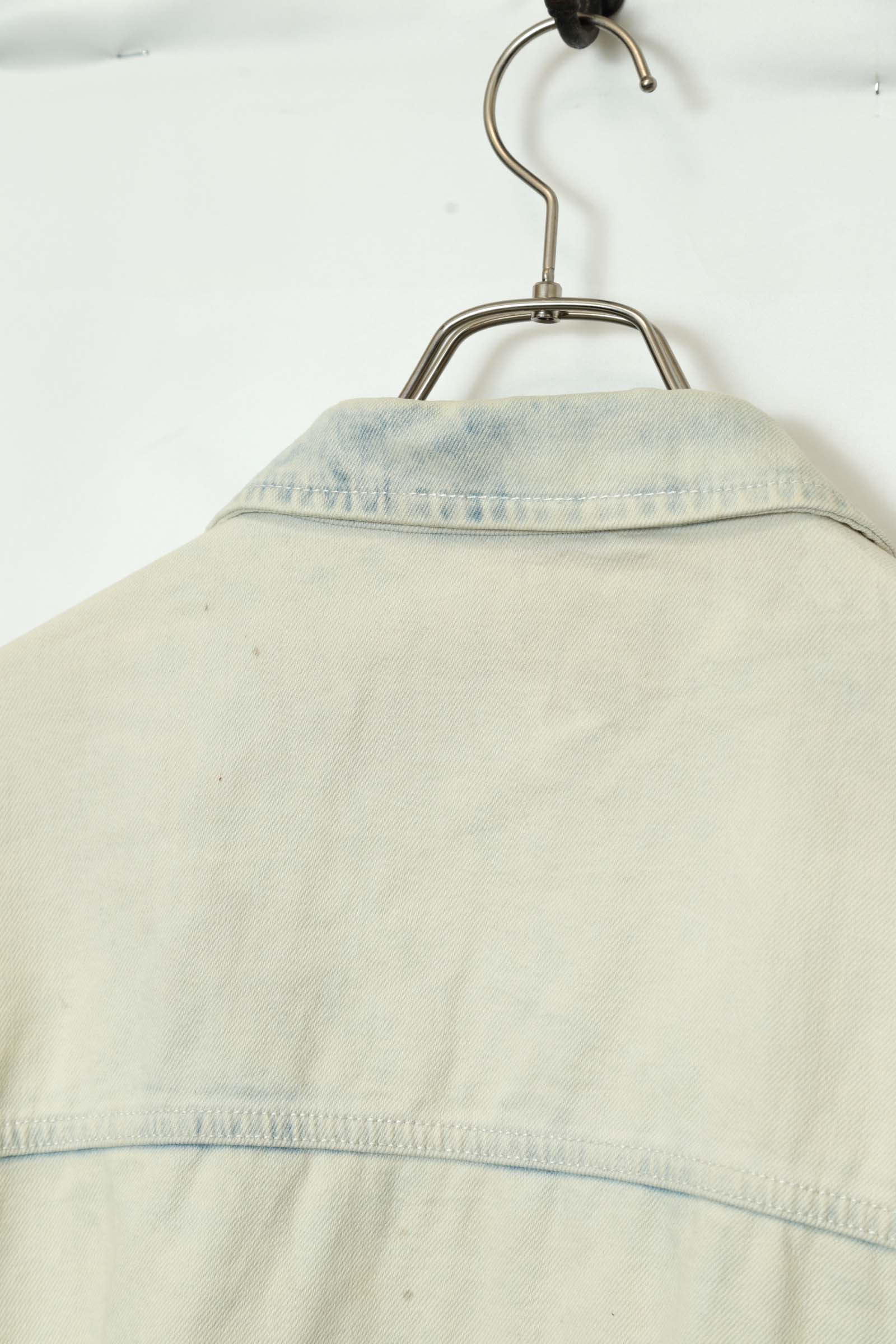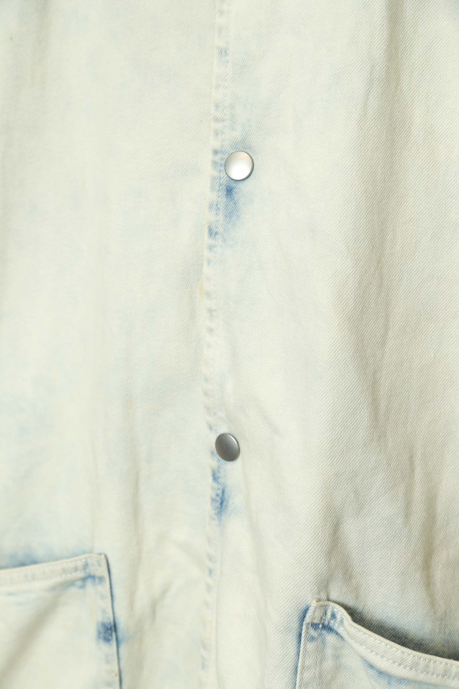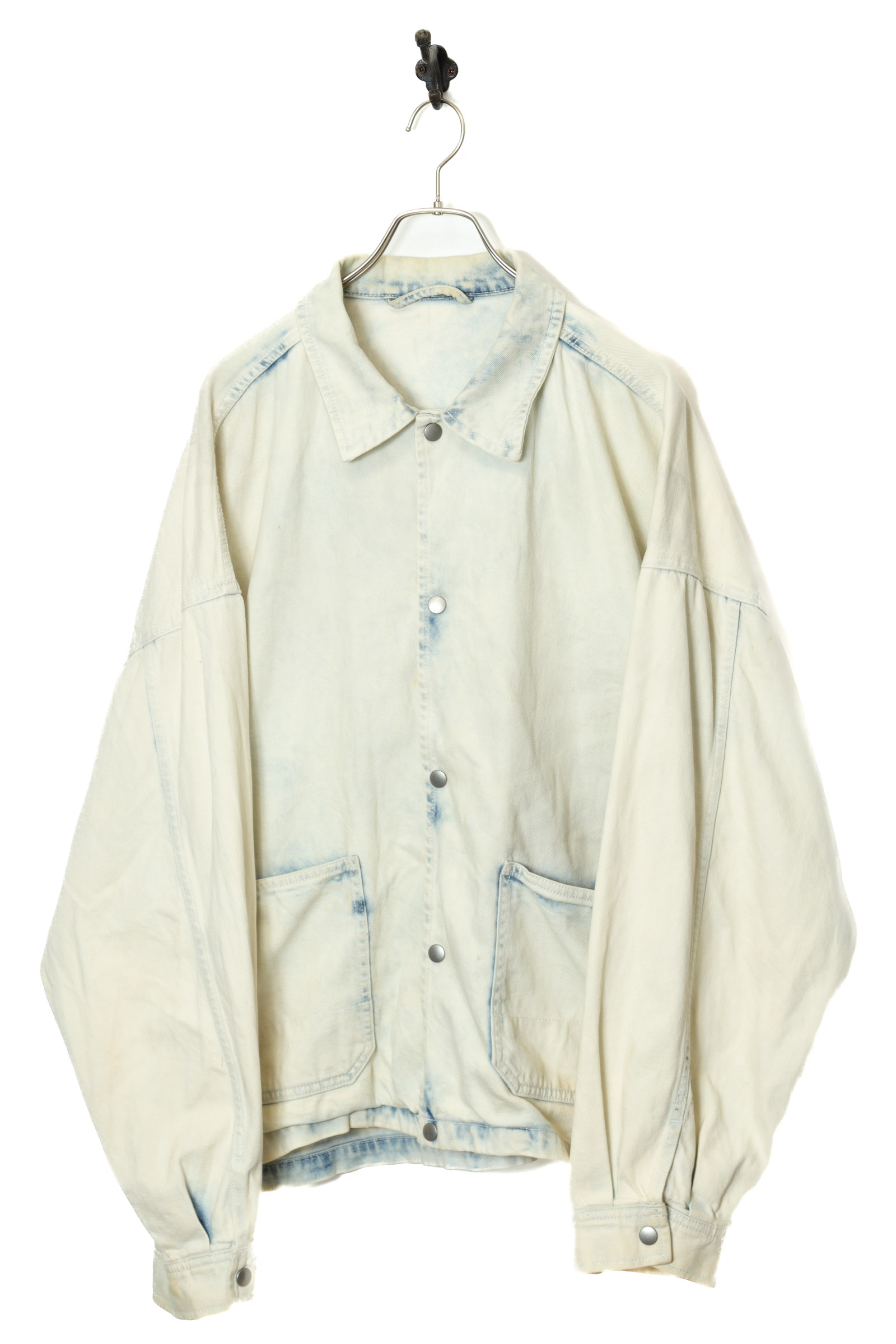 とてもお洒落なデニムカバーオールジャケットが入荷しました!部分的に薄い小さな塗料の付着はありますが、その他商品のコンディションはとても綺麗で、大きめのサイズ感でお洒落に着こなせます!いい雰囲気のブリーチ加工がおすすめの一着!こちらの商品は古着になります。古着の特性をご理解の上ご購入お願い致します。何でも気になる事ありましたら、ぜひご連絡お願い致します。