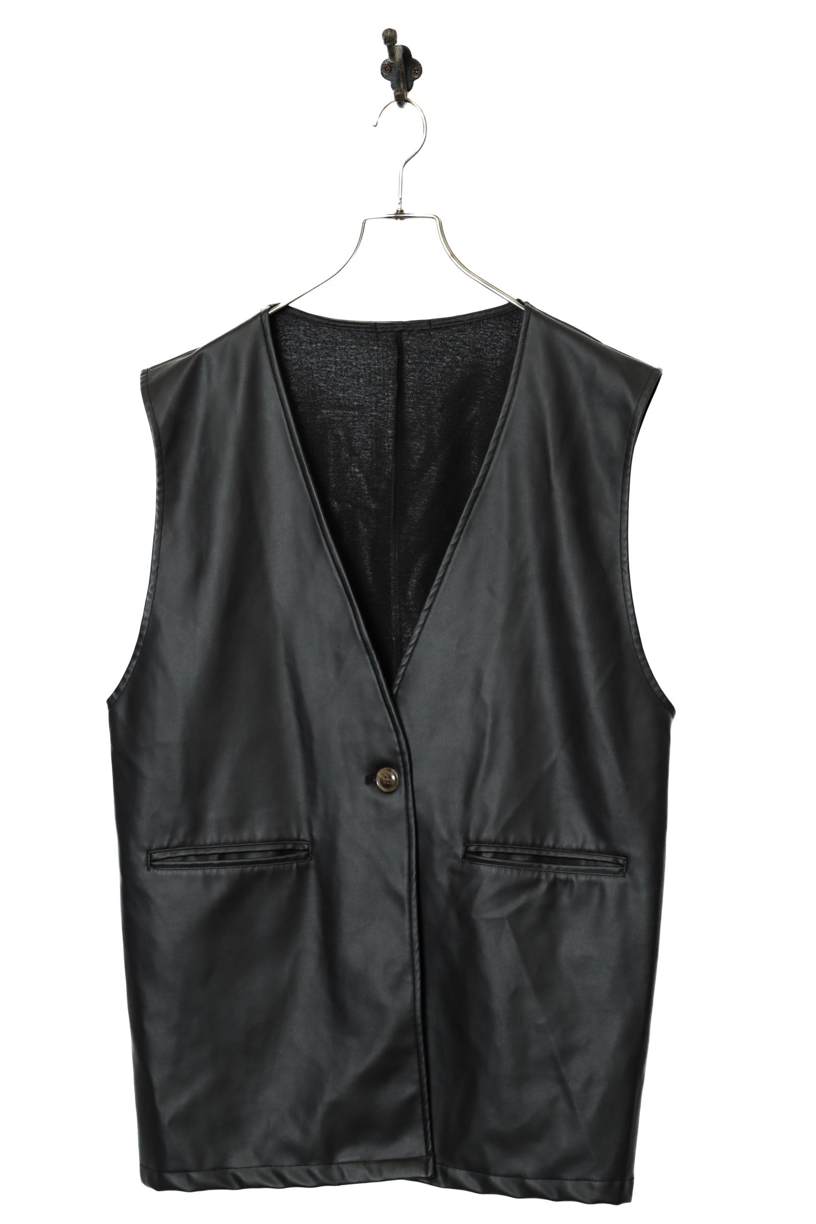 とてもお洒落なフェイクレザーベストが入荷しました!商品のコンディションはとても綺麗で、大きめのサイズ感でお洒落に着こなせます!こちらの商品は古着になります。古着の特性をご理解の上ご購入お願い致します。何でも気になる事ありましたら、ぜひご連絡お願い致します。