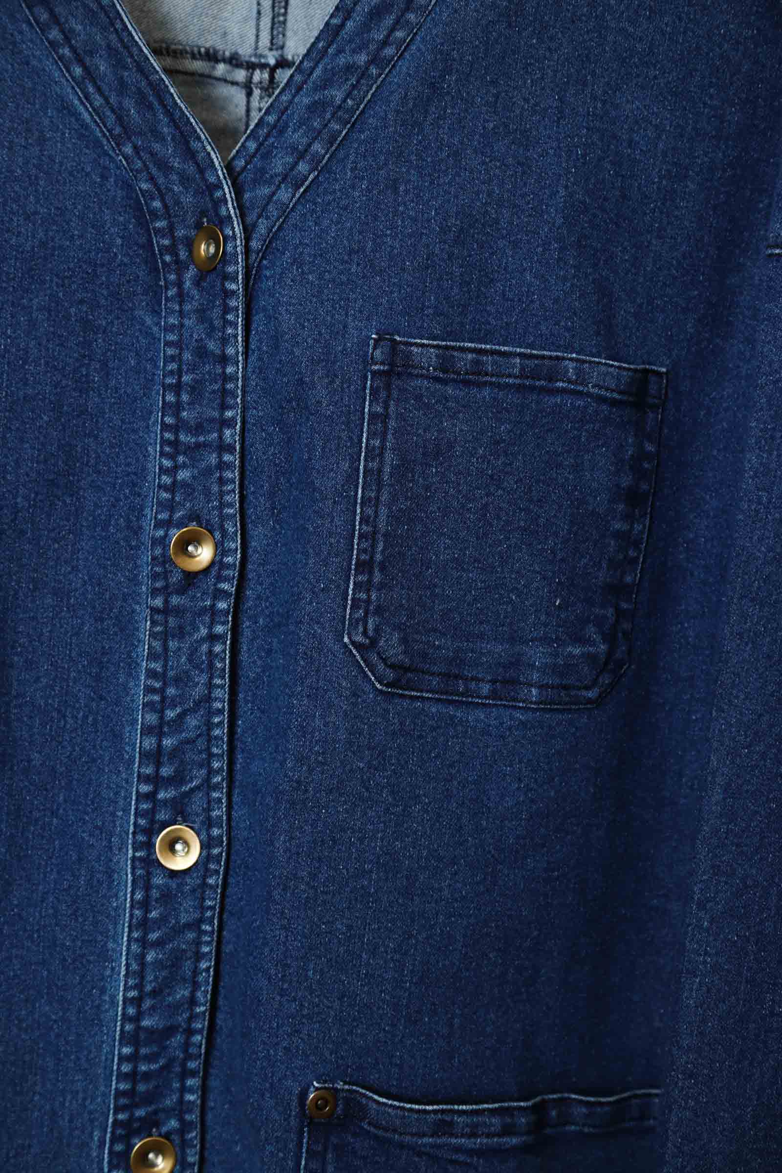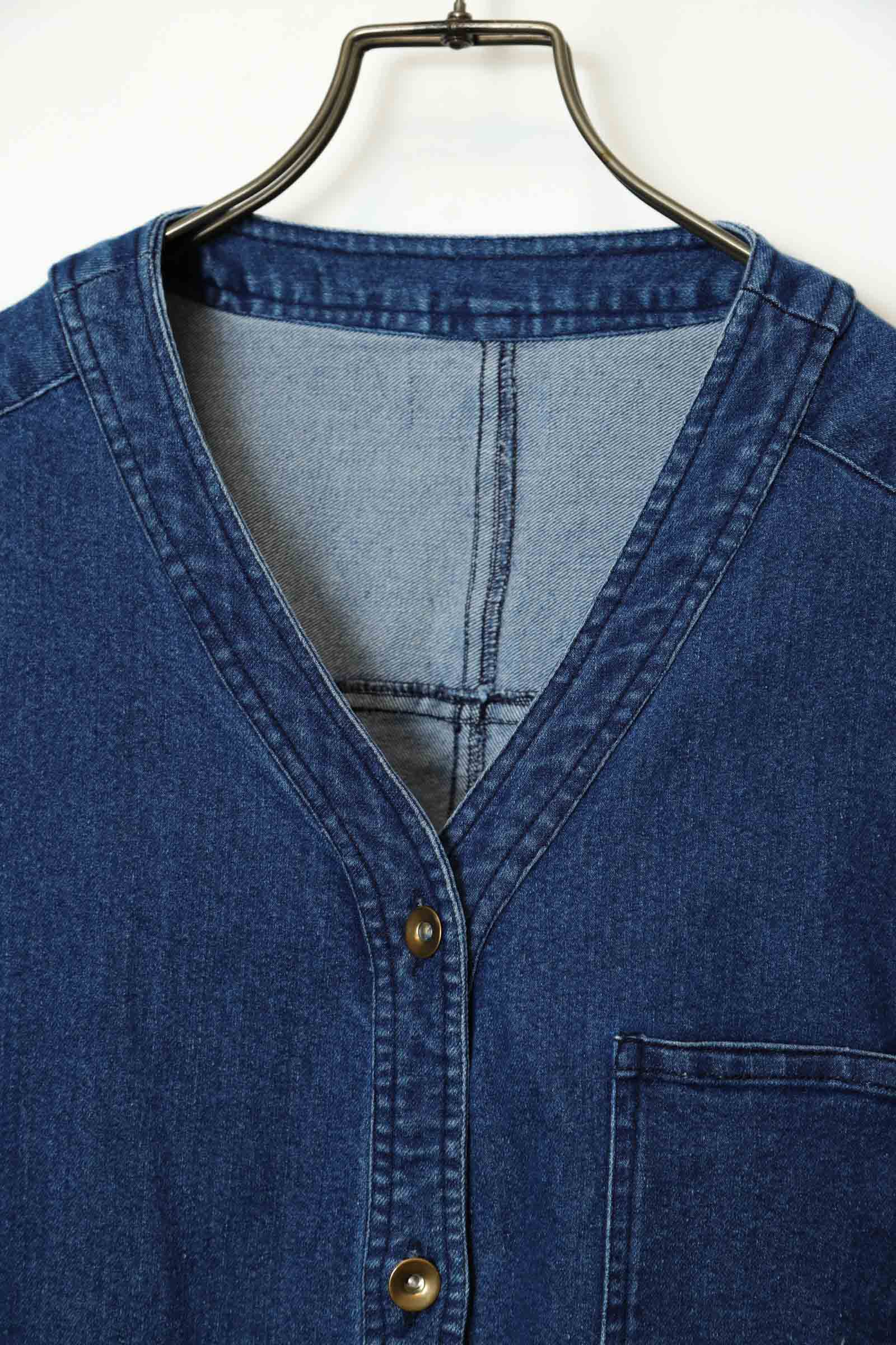 VINTAGE NO COLLAR DENIM JACKET/XL
