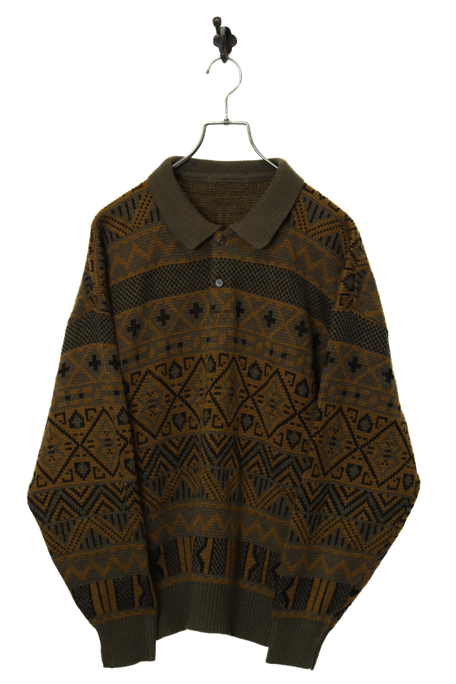VINTAGE PATTERN KNITED PULL-OVER SWEATER/L