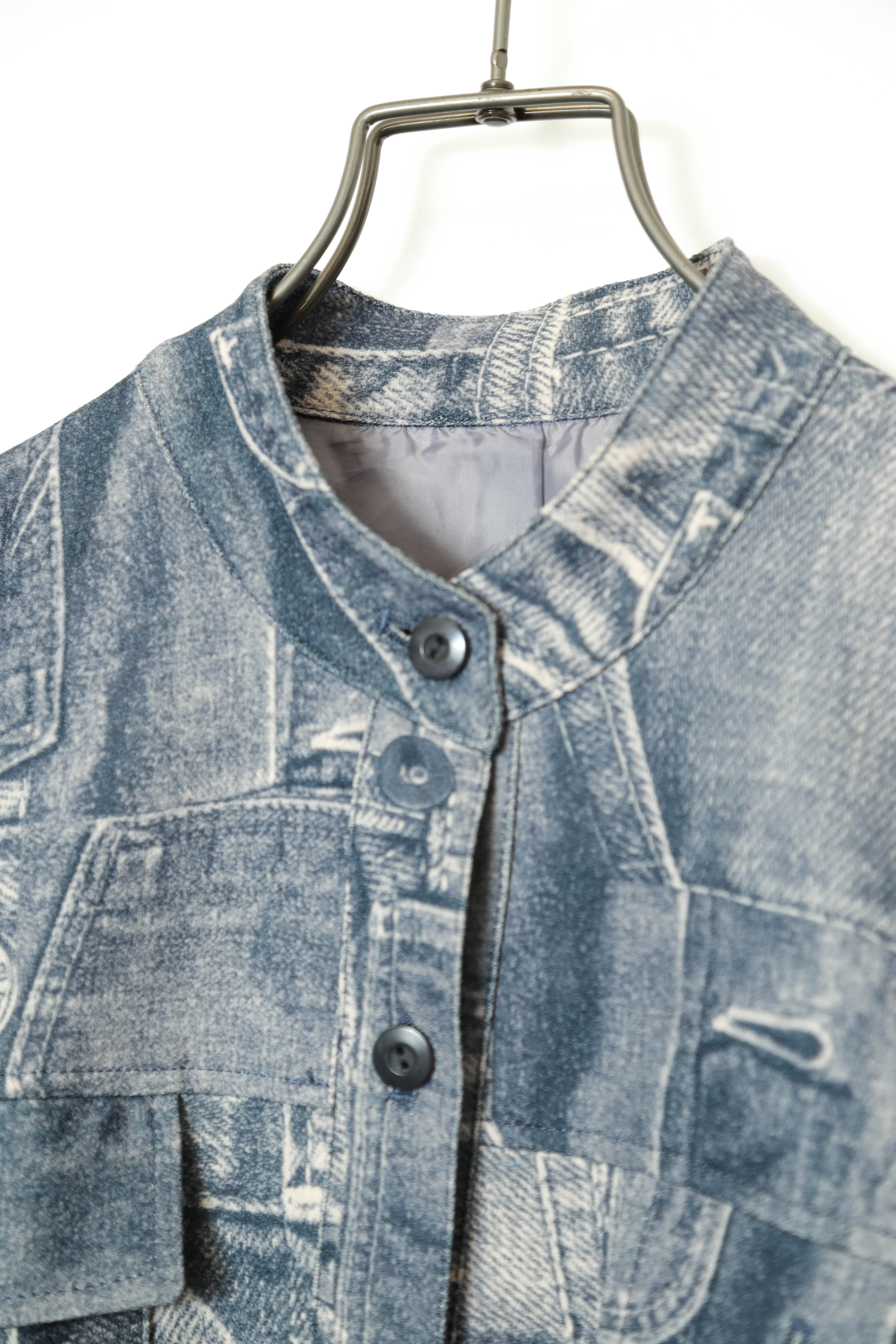 VINTAGE PRINTED STAND COLLAR JACKET/M
