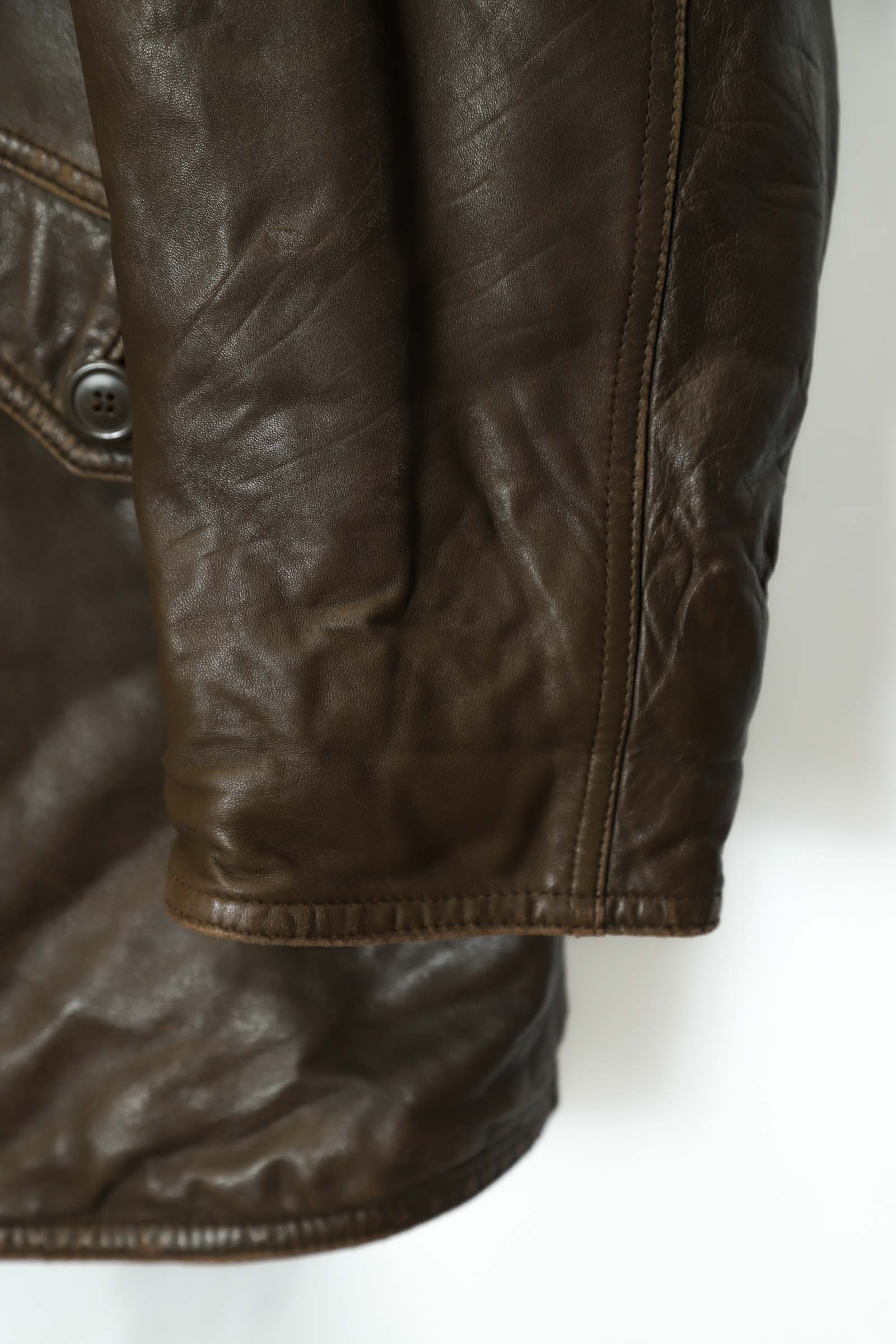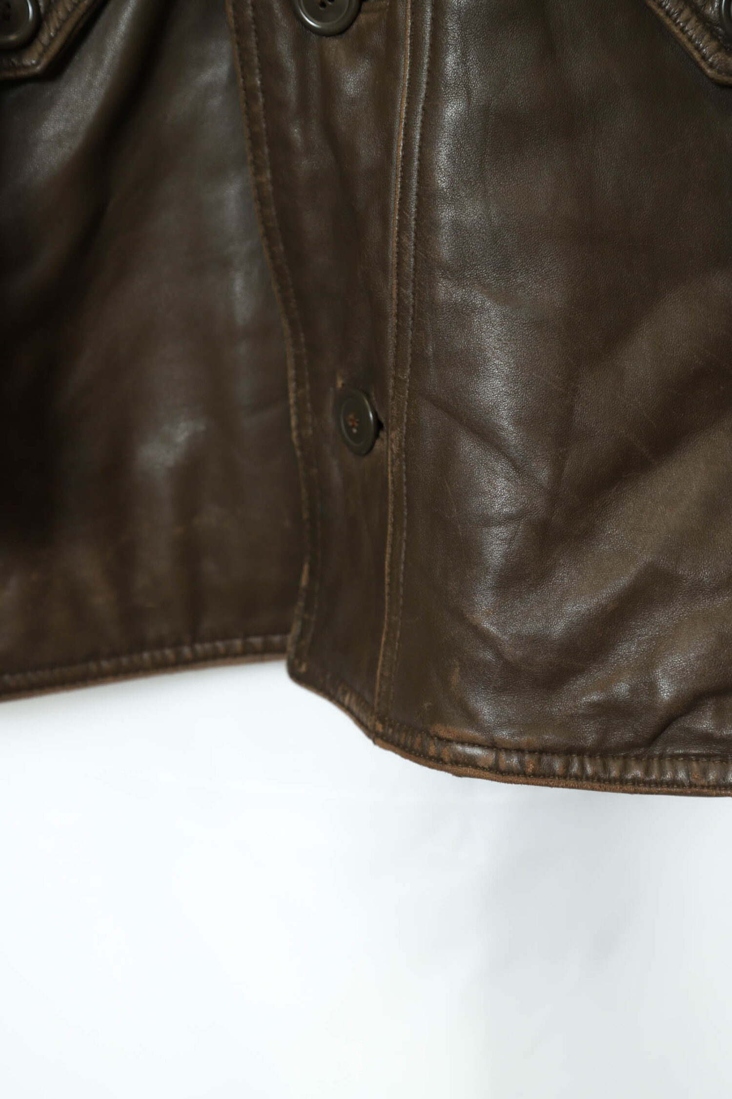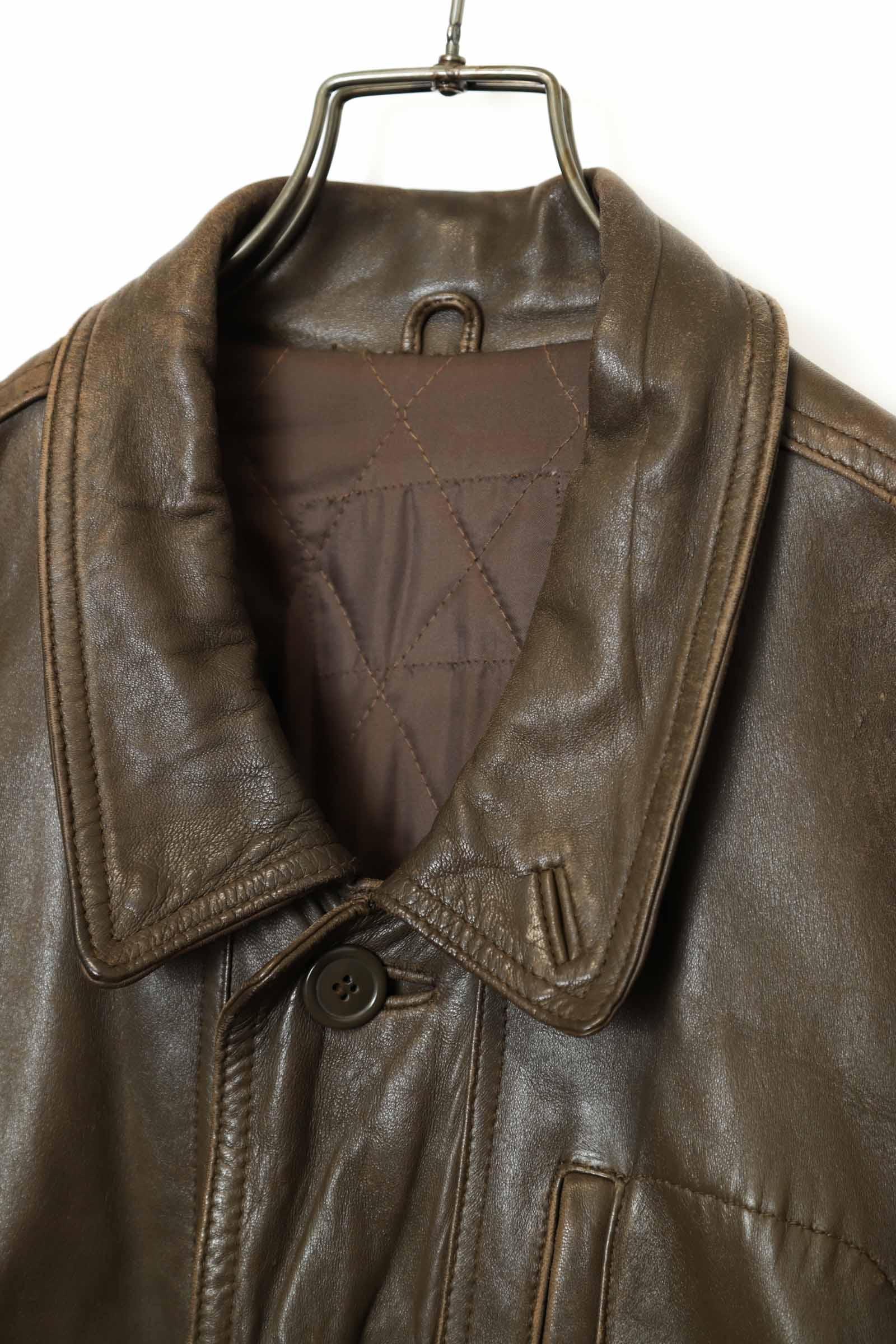 とてもお洒落なシープレザーのカバーオールジャケット入荷しました!擦れ感、部分的に色の抜け感はありますが、それもアジですね!ダメージや目立った汚れはなく着用には問題ありません!その他商品のコンディションはよく、大きめのサイズ感でお洒落に着こなせます!裏地はキルティングで暖かくこれからの季節におすすめです!こちらの商品は古着になります。古着の特性をご理解の上ご購入お願い致します。何でも気になる事ありましたら、ぜひご連絡お願い致します。