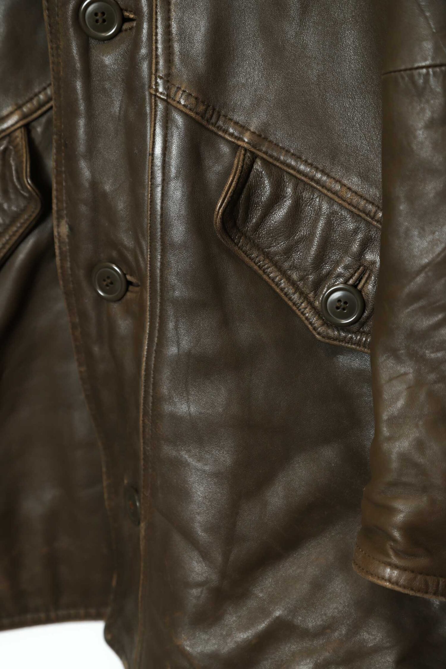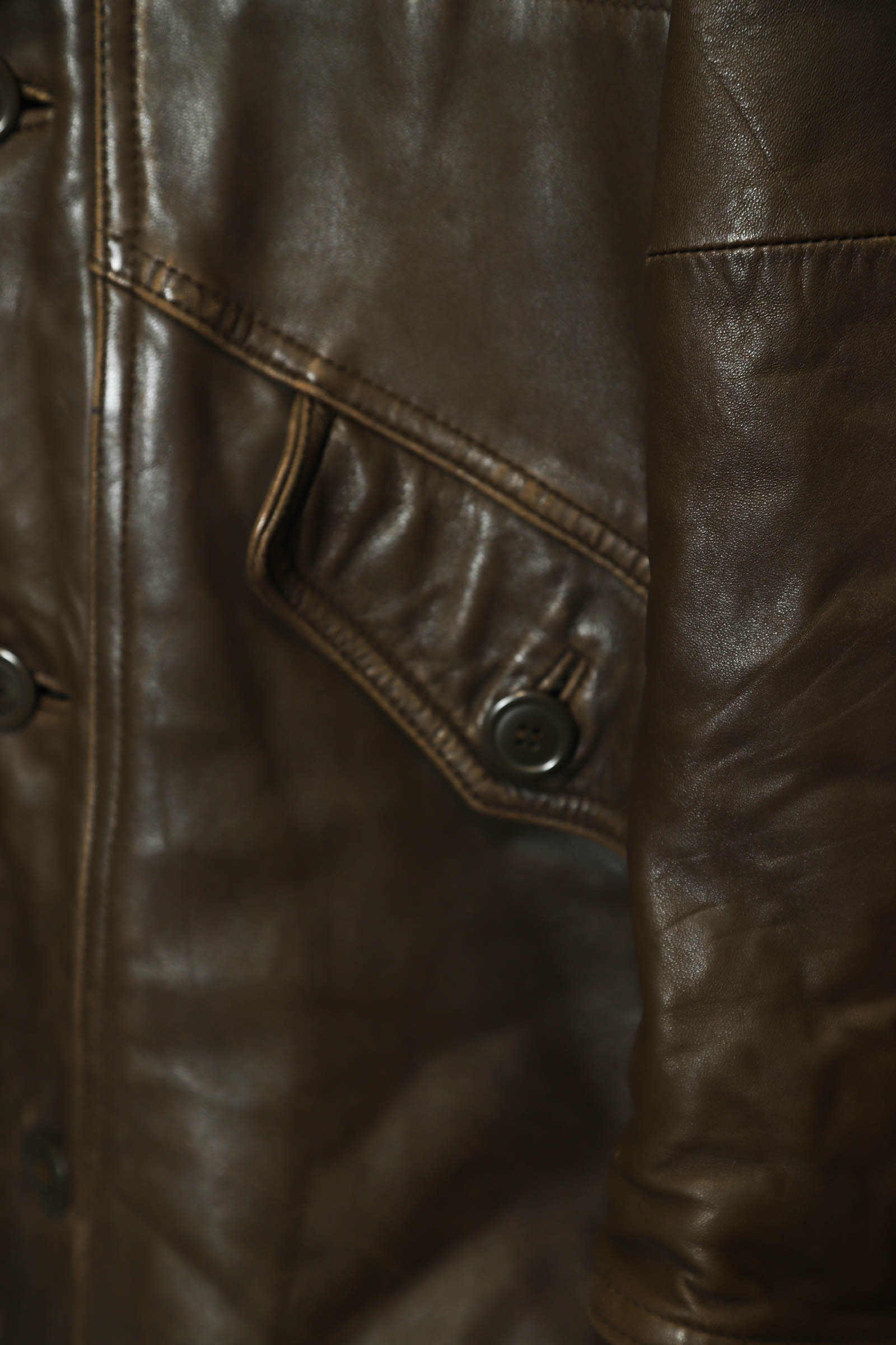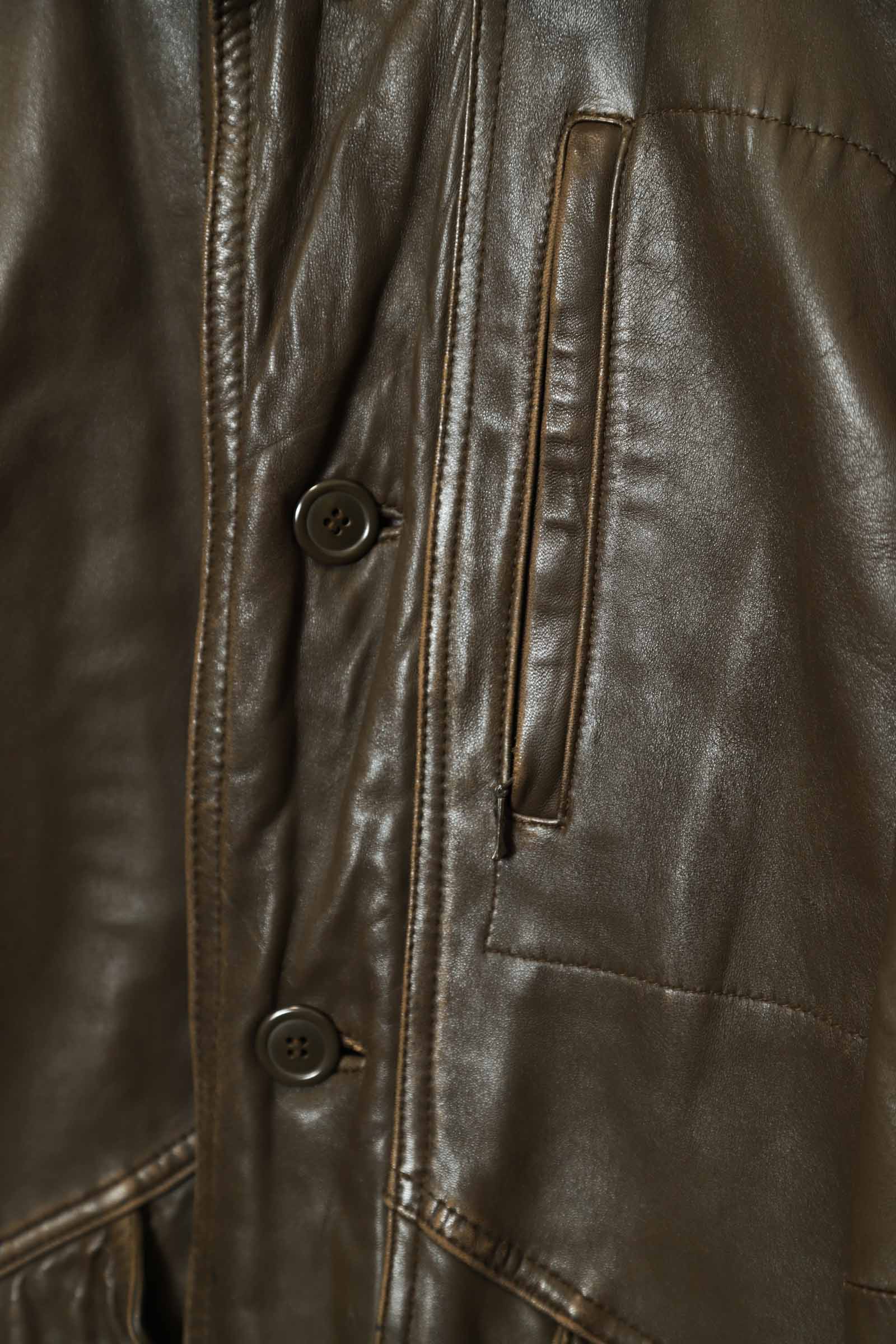 とてもお洒落なシープレザーのカバーオールジャケット入荷しました!擦れ感、部分的に色の抜け感はありますが、それもアジですね!ダメージや目立った汚れはなく着用には問題ありません!その他商品のコンディションはよく、大きめのサイズ感でお洒落に着こなせます!裏地はキルティングで暖かくこれからの季節におすすめです!こちらの商品は古着になります。古着の特性をご理解の上ご購入お願い致します。何でも気になる事ありましたら、ぜひご連絡お願い致します。