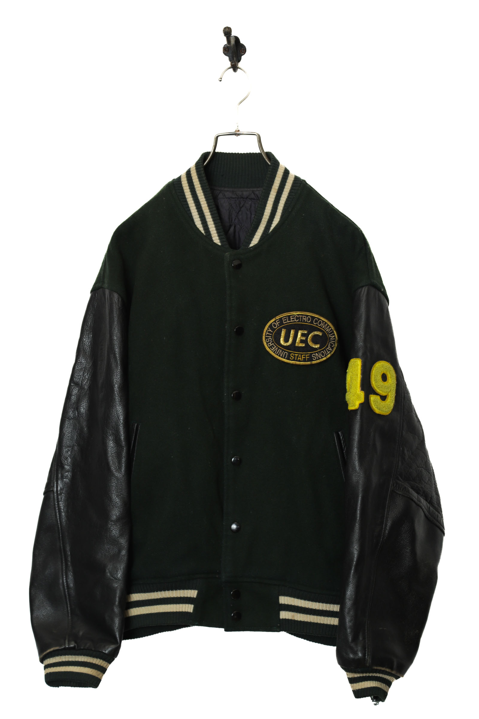 とてもお洒落なスタジアムジャケットが入荷しました!袖はリアルレザー仕様!ある程度使用感、袖口のほつれはありますが、着用には問題ない程度です!大きめのサイズ感でお洒落に着こなせます!こちらの商品は古着になります。古着の特性をご理解の上ご購入お願い致します。何でも気になる事ありましたら、ぜひご連絡お願い致します。