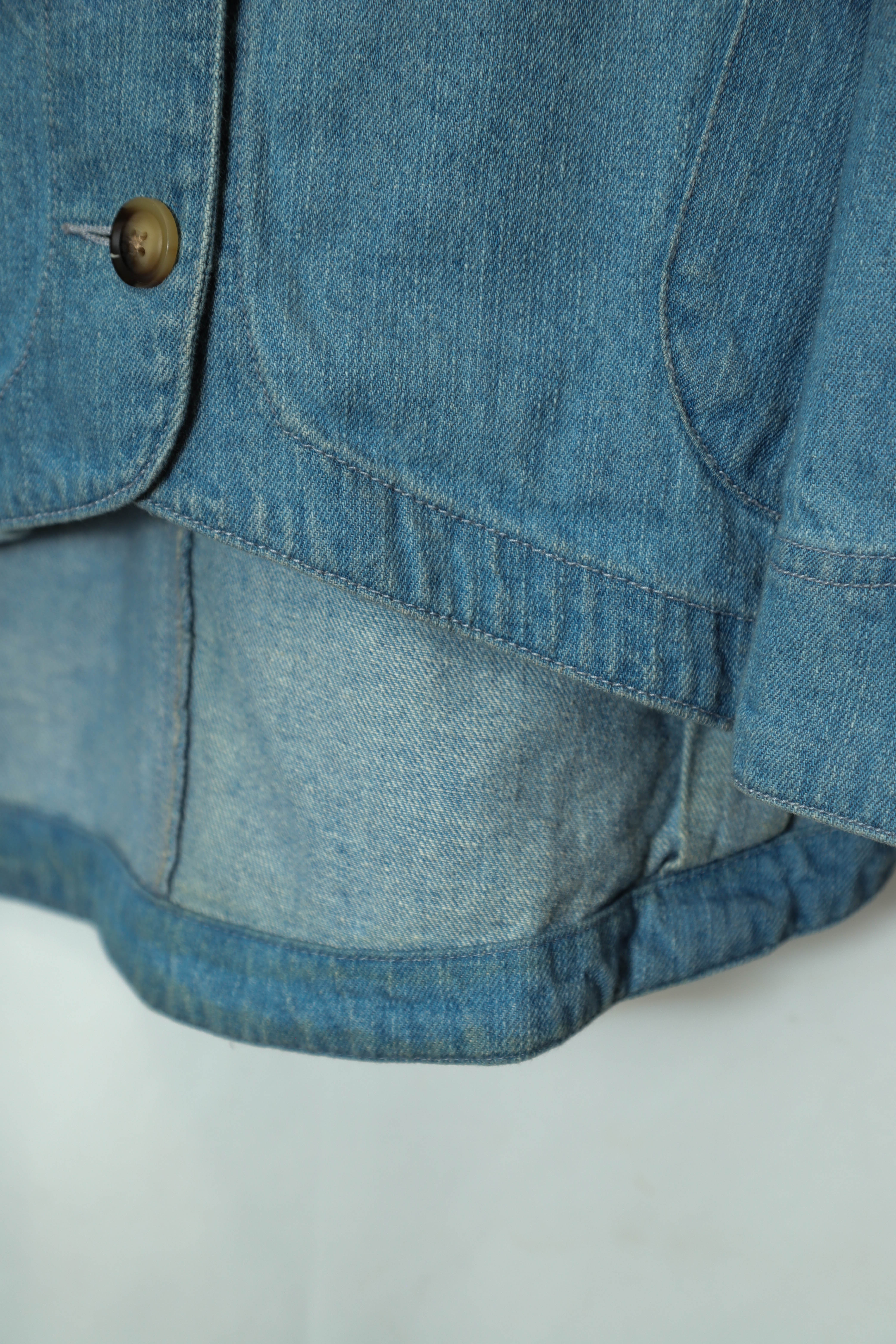とてもお洒落な変形デニムジャケットが入荷しました!商品のコンディションはとても綺麗で、いいゆとり感でお洒落に着こなせます!こちらの商品は古着になります。古着の特性をご理解の上ご購入お願い致します。何でも気になる事ありましたら、ぜひご連絡お願い致します。